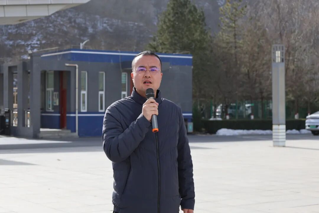贺建旗为比赛鸣枪发令,郝煜东作动员讲话。