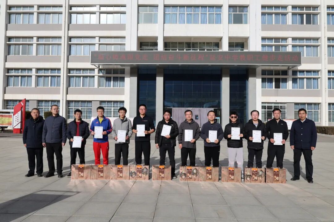 为深入贯彻落实全民健身国家战略,丰富教职工体育文化生活,鼓励教职工勤锻炼、强身心、健体魄,1月14下午,延安中学成功举办教职工健步走活动。校党委书记贺建旗、副校长杨万青、工会主席郝煜东、副校长薛江柱、校长助理马飞出席活动。