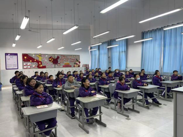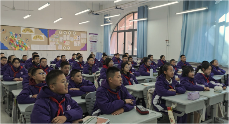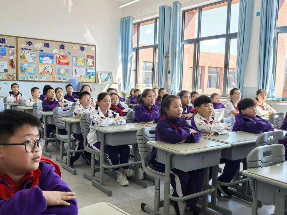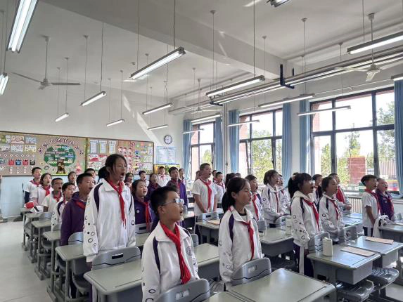 郝子京老师带领学子唱响《东方红》,这首承载着红色记忆的经典民歌,在孩子们清澈的嗓音中焕发新的生命力。搭配手势律动,孩子们用眼神传递崇敬,用歌声致敬初心,让红色基因在童年扎根。
