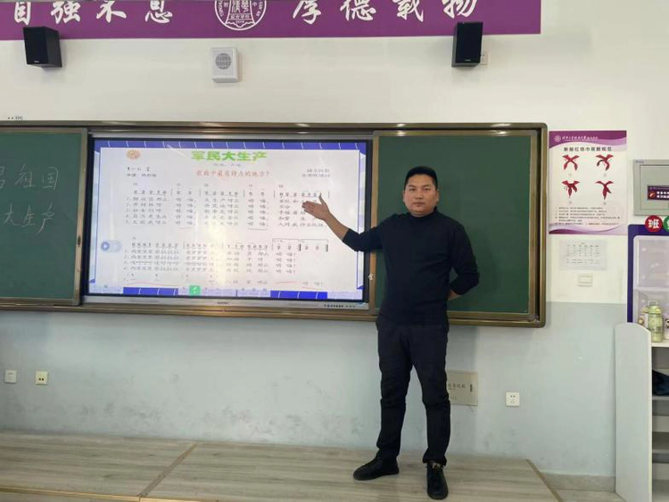 任品、钟庆、古满林三位老师携手,带领学子唱响《军民大生产》。歌曲中铿锵有力的劳动号子,孩子们用整齐的合唱展现“自力更生、艰苦奋斗”的精神,歌声里满是少年意气与家国豪情。