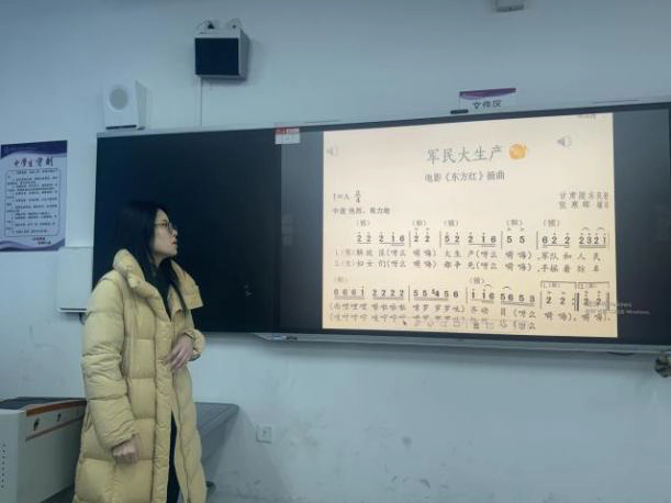 两位老师引领学子演绎《拥军秧歌》,孩子们将“拥军爱民”的质朴情感融入歌声与律动,民俗韵味与红色情怀在课堂上自然流淌。