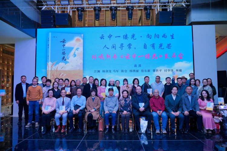 活动最后,主持人作总结致辞,感谢所有主办、承办、协办单位及到场嘉宾与读者,祝愿每个人都能心中有诗、眼中有光、脚下有路。全体嘉宾、作者林曦与现场来宾共同合影留念,《云中一缕光》新书发布会在阵阵掌声与诗意氛围中圆满落幕。